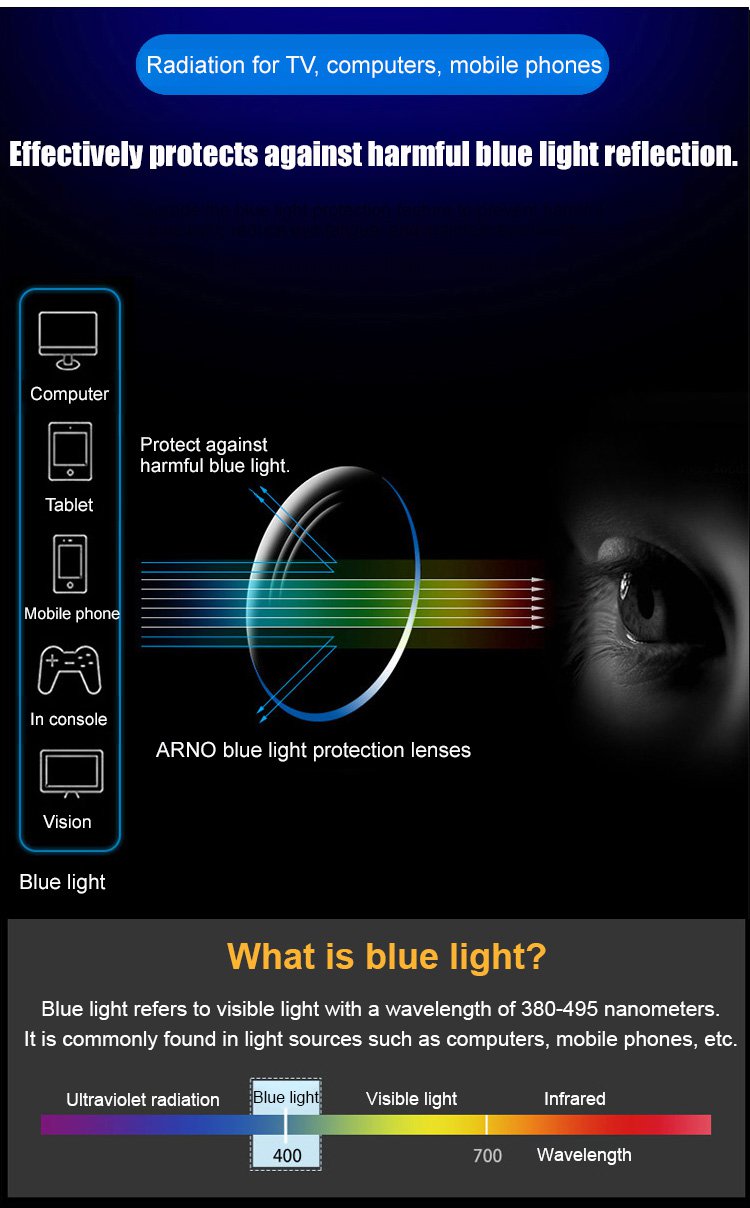 Blue light blocking multifocal photochromic glasses